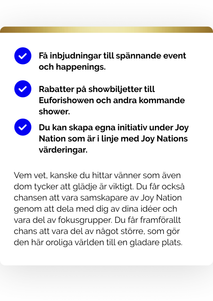 Du har kommit rätt. Joina glädjenationen. Bli glädjeambassadör.